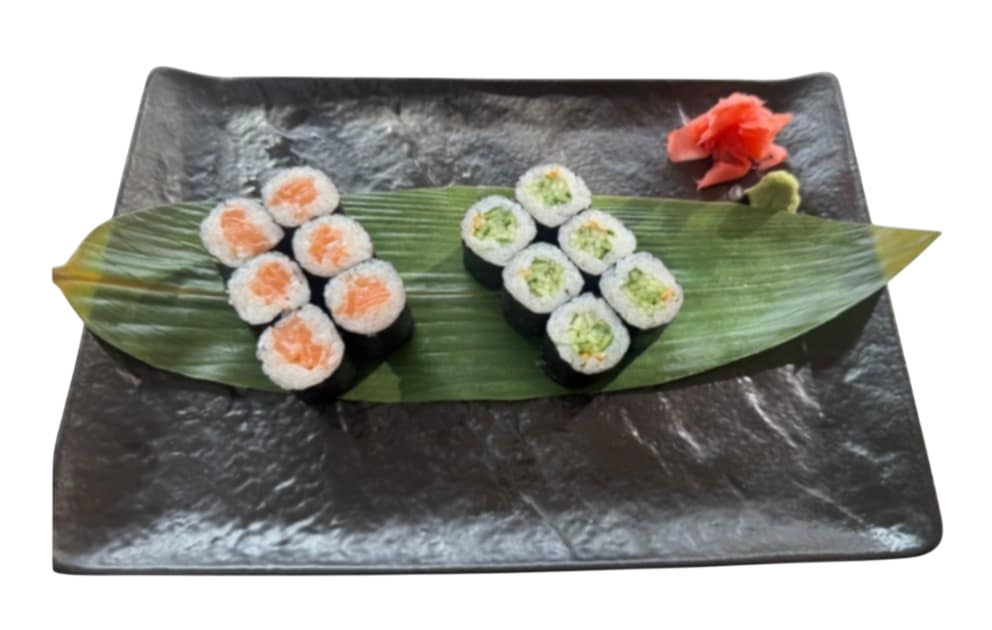 6 california tuńczyk bluefin z awokado 6 california łosoś z awokado 6 California bluefin tuna with avocado 6 California salmon with avocado